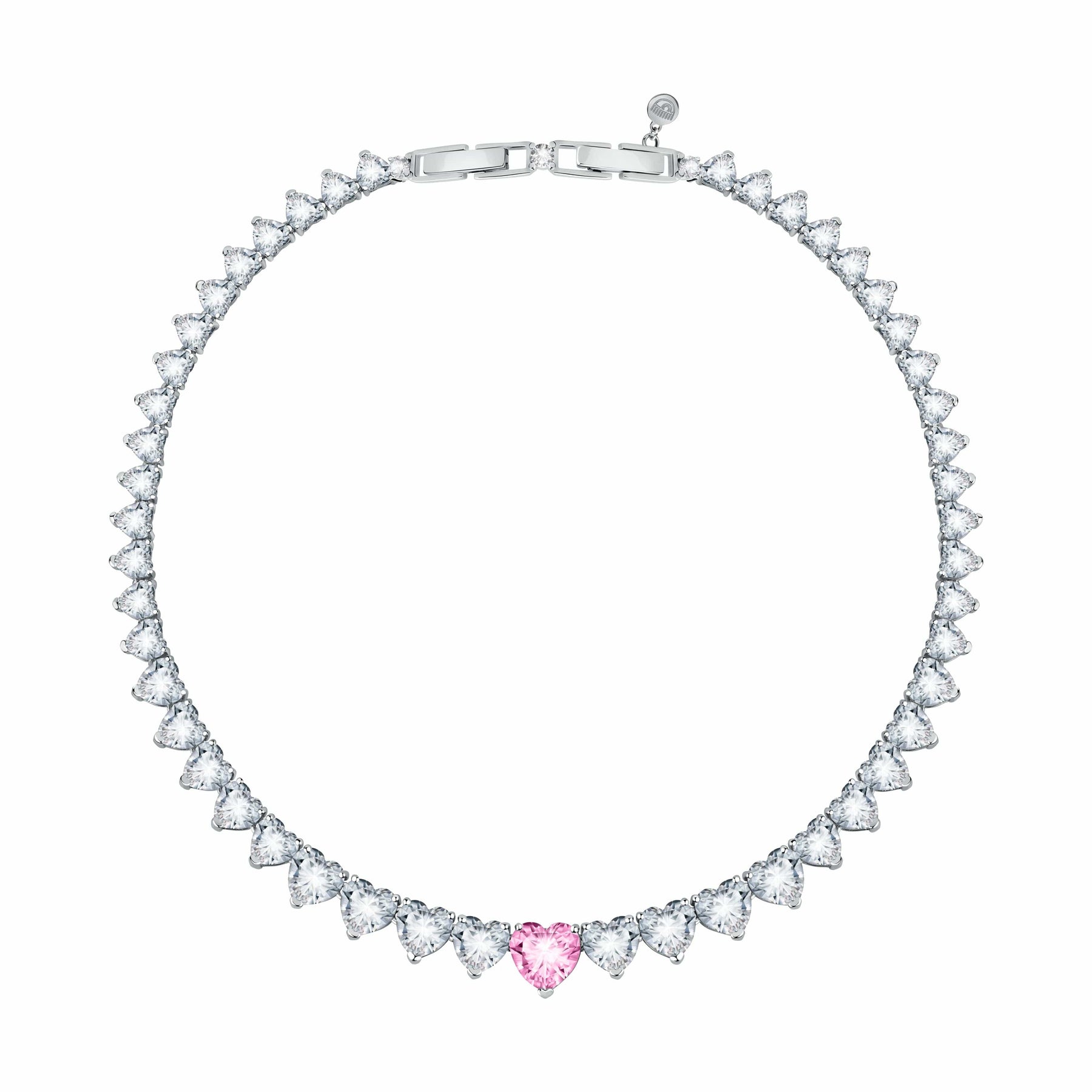 Italian perfection in a trendy collection. Featuring glittering pink and white heart stones set on the chain, this necklace is perfect as a gift, or to complement an array of outfits.