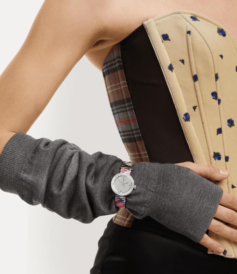 The tartan motif is an essential element of the house’s iconography, reminiscent of Vivienne's signature punk style. The Rebel watch receives a tartan motif printed across the strap, complete with our archival 'SEX' lettering detail, first seen on the Sex choker from our collection from 1989.