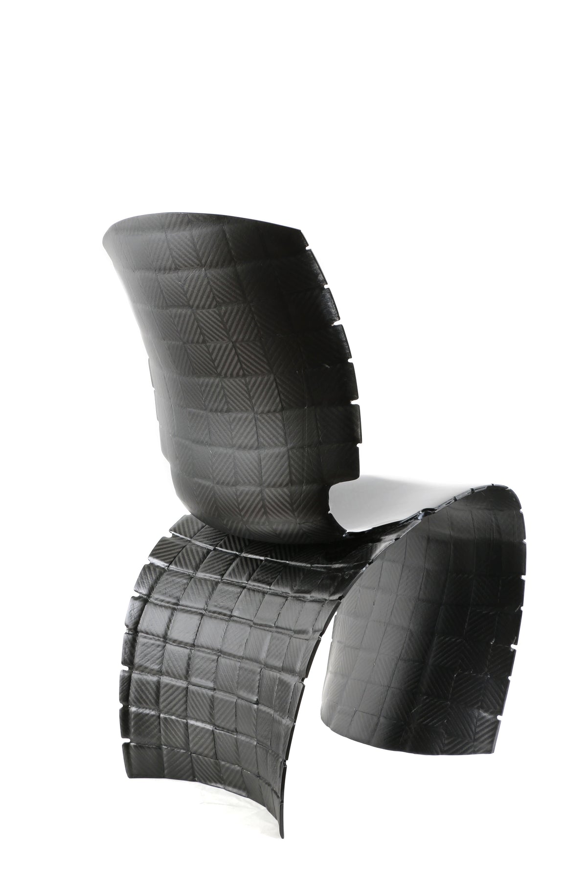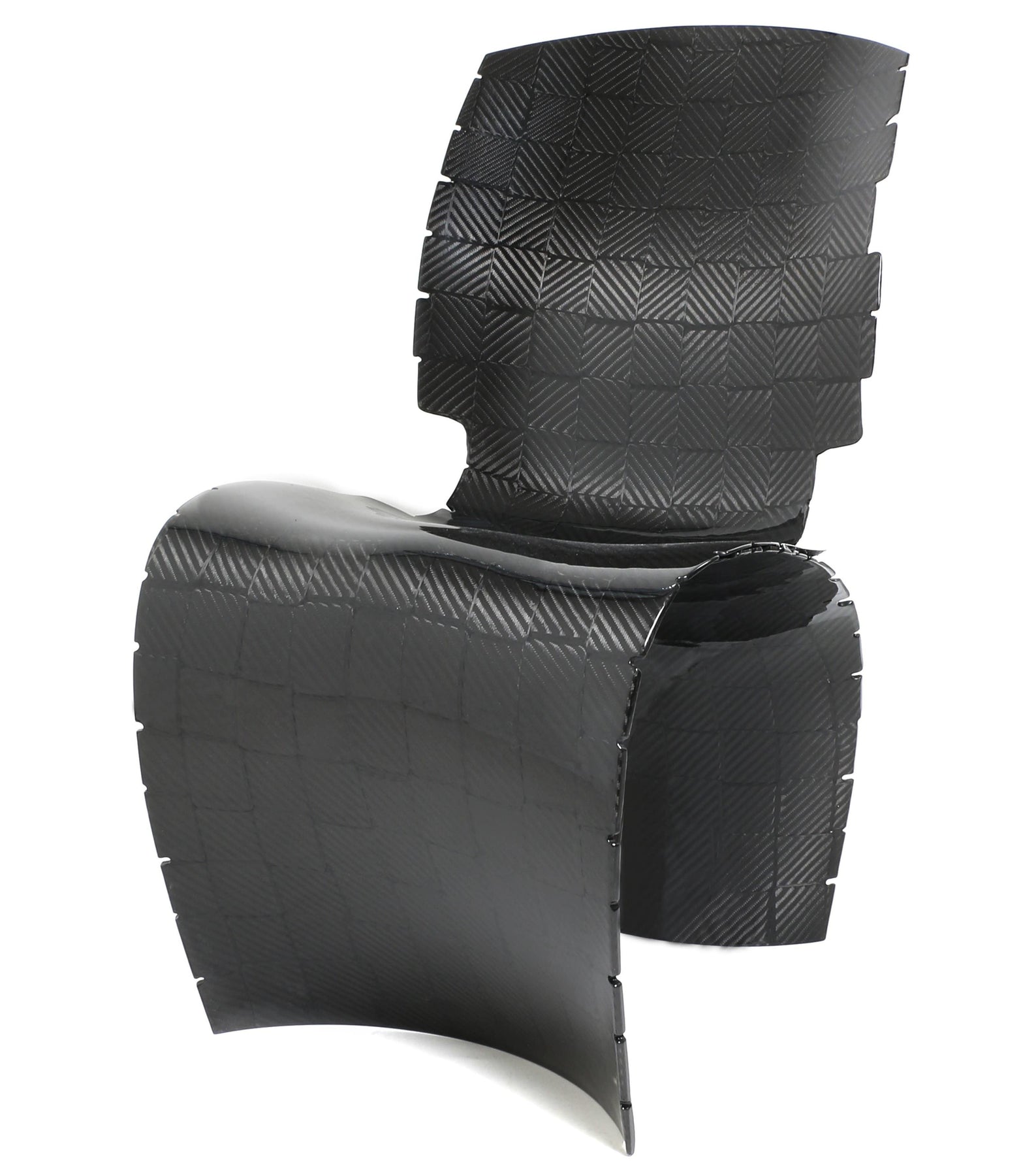 Full meshed carbon fibre table chair, cooked in autoclaves and assembled with aerospace technologies.